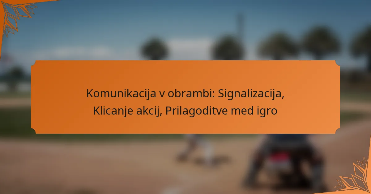 Učinkovita komunikacija v obrambi je ključna za usklajevanje dejanj igralcev in izvajanje strategij med igro. To vključuje signalizacijo, klicanje iger in prilagajanje v igri, da se prilagodimo taktiki nasprotne ekipe. Z uporabo strukturiranih komunikacijskih metod lahko ekipe izboljšajo svojo obrambno učinkovitost in ohranijo konkurenčno prednost.