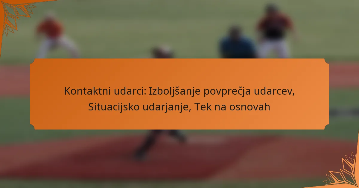 Kontaktno udarjanje je ključno za izboljšanje povprečja udarcev, saj združuje učinkovite tehnike z globokim razumevanjem vrst metov. Z obvladovanjem situacijskega udarjanja lahko igralci prilagodijo svoje strategije kontekstu igre, kar vodi do boljšega odločanja in rezultatov. Poleg tega močne veščine teka po bazah dodatno povečujejo možnosti za dosego točk, kar je ključna komponenta celotne uspešnosti na igrišču.
