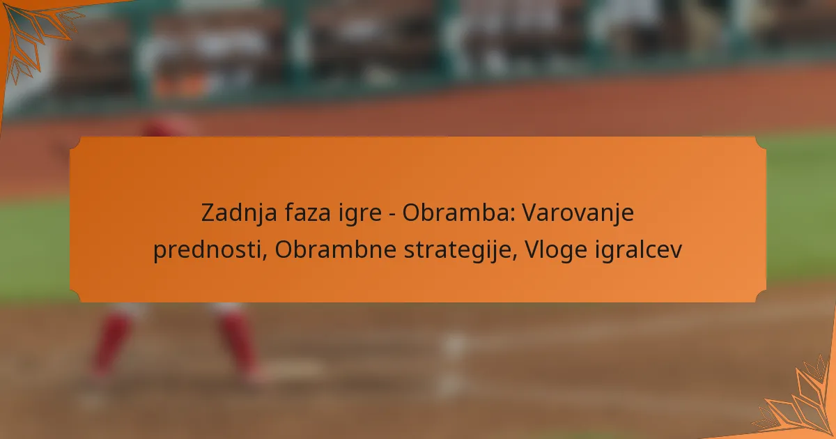 Obramba v pozni igri je ključna za zaščito prednosti, kar zahteva, da ekipe uporabljajo strateško upravljanje s časom in učinkovito komunikacijo. Prilagajanje obrambnih strategij, kot je izbira med zonalno ali osebno obrambno igro, je bistveno glede na kontekst igre. Poleg tega razumevanje specifičnih vlog igralcev zagotavlja, da vsak član ekipe prispeva k ohranjanju nadzora in zmanjšanju možnosti za točke nasprotnika.