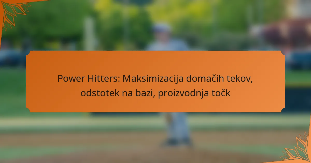 Močni udarci so ključni igralci v bejzbolu, znani po svoji sposobnosti, da dosledno udarjajo domače teke in prinašajo točke. S izboljšanjem svojih mehanik zamaha, usmerjenim treningom moči in razumevanjem svojega igralnega okolja lahko ti igralci maksimirajo svojo učinkovitost. Poleg tega izboljšanje odstotka doseganja baze skozi disciplinirano udarjanje in pametno izbiro žogic dodatno povečuje njihov prispevek k uspehu ekipe.