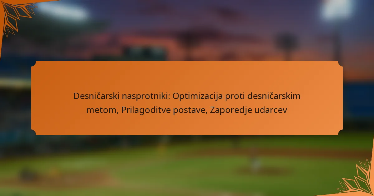 Za optimizacijo postavitev proti desničarjem se morajo ekipe osredotočiti na prilagajanje vrstnega reda udarcev, izkoriščanje prednosti platoon in analizo statistike igralcev. Razumevanje učinkovitosti in zdravja igralcev je ključno za sprejemanje učinkovitih odločitev, ki povečujejo napadalno učinkovitost.