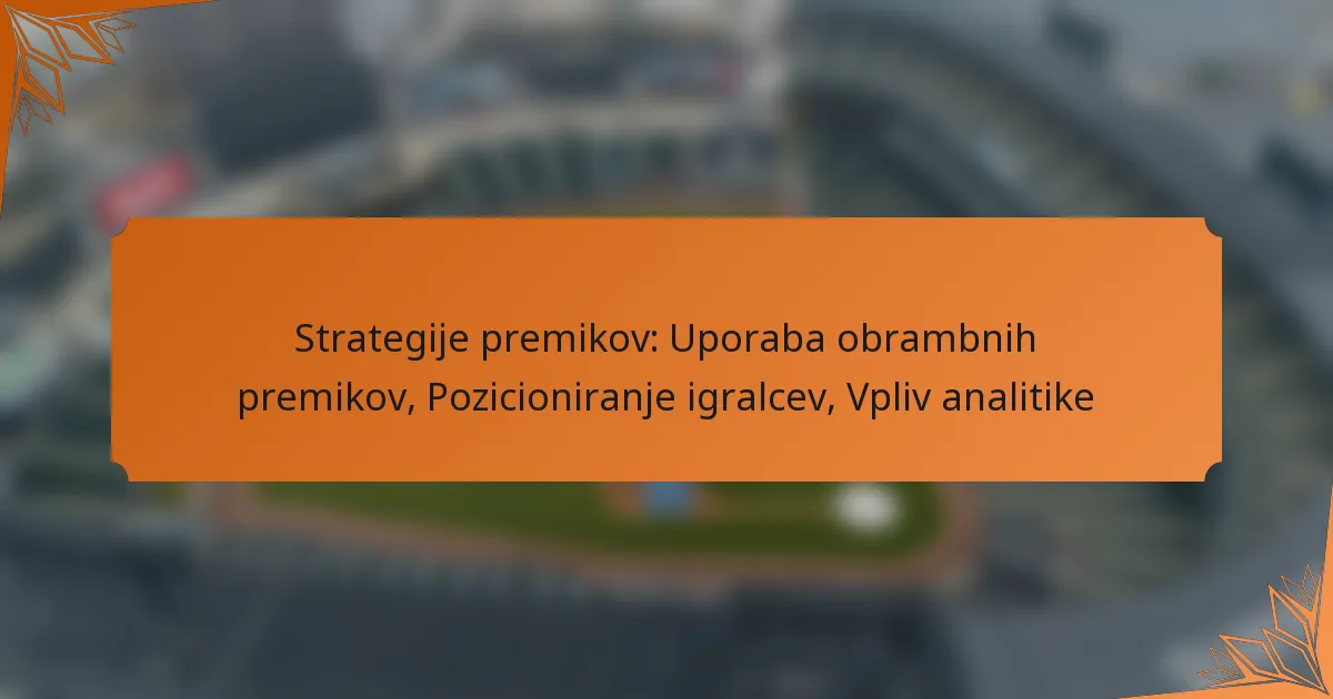 Najboljše ekipe v Major League Baseball (MLB) so učinkovito uporabljale obrambne premike za povečanje svoje obrambne učinkovitosti in zmanjšanje možnosti za dosego točk nasprotnikov. Te strategije so vodene z analitiko, ki informira postavitev igralcev na podlagi zgodovinskih podatkov o uspešnosti in udarnih tendencah.
